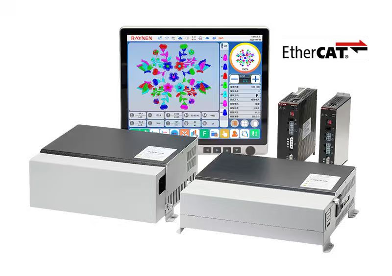 S600系列刺繡機電控系統通過緊湊的機身設計、標準化部件應用,提升了空間利用率和設備維護便捷性,降低了運營成本。其無線操作屏、高精度絕對值編碼器伺服控制系統、全新通用專機伺服等技術創新,不僅提高了生產效率和產品質量,還通過移框智能防夾設計、安全光幕和高清顯示屏增強了設備的安全性和操作性。同時,配置了智慧工廠網絡管理接口,實現了設備的遠程智能化管理,并在精度控制上達到行業領先水平。