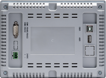 | UH 407L | 7"TFT | 800×480 | USB2.0×1,Type A(USB1),支持U盤更新固件、組態和存儲數據 | USB2.0×1,Type B(USB2),支持程序上傳下載 | COM1:RS485/RS422 COM2:RS232 | 不支持 | 公頭 |
